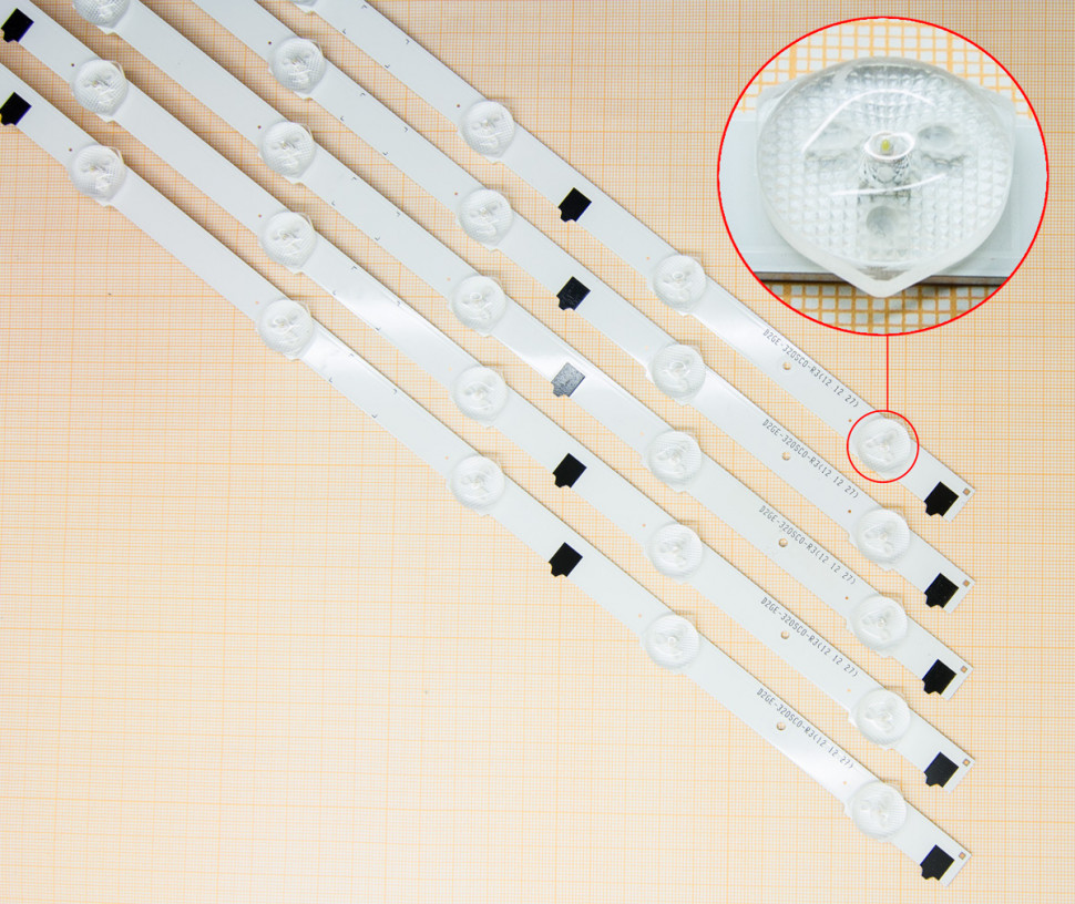 • Комплект из 4х линеек светодиодной подсветки (LED) для телевизора Samsung UE32H4270, UE32H5000, UE32H5020, UE32H5020AK, UE32H5030, UE32H5070, UE32H5300, UE32H5500, UE32H6200, UE32H6230, UE32H6350, UE32H6400, UE32H6410, UE32H6500, UE32H6510, UE32H6640SS, UE32H6670, UE32H6740, UE32H6800, UE32J5000, UE32J5100, UE32J5120, UE32J5200, UE32J5373, UE32J5530, UE32J5550, UE32J5600, UE32J6200, UE32J6270, UE32J6300, UE32H6350, T32E310EX